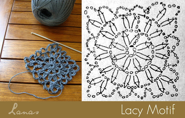 light cotton yarn (Anne by Linhas Circulo), with 3.5 mm crochet hook. The motif is a basic lacy square (see chart),
